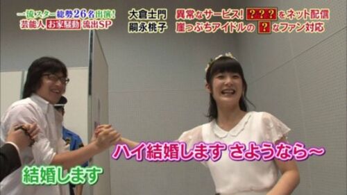 梨華ちゃんの降臨を見届けたあと、SATOYAMA会場の外のコンコースをふらふらしていたら、ももちの姿をした男性が歩いているのを見ました。「山越さんだ!」と思いました。山越さんは、握手会でももちに結婚を申し込み、OKをもらったというすごい人です。その…